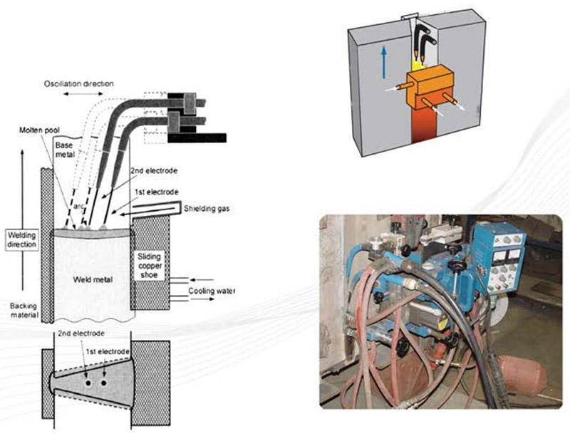 双丝气电立焊机是为大线能量焊接用钢厚板焊接而设计的,主要用于大型集装箱船的船板焊接。